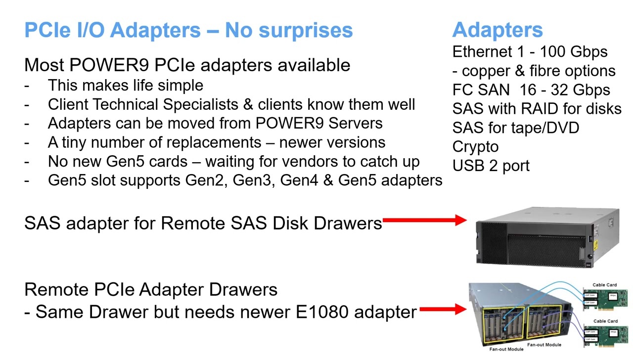 Power9 어댑터를 Power10로 계속 사용할 수 있는데, 일부 변경사항이 있긴 하지만 비슷한 모델을 사용할 수 있어요.